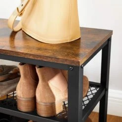 Op de schappen van dit schoenenrek kan je jouw schoenen mooi opbergen. Je kan jouw schoenen bovendien gemakkelijk aantrekken door op het mooie, houten bankje plaats te nemen.