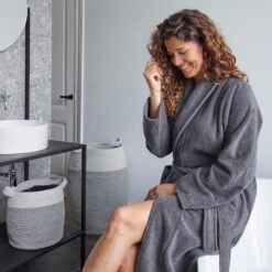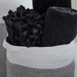 Met deze Osman wasmand van Aquanova blijft de vuile was mooi bij elkaar. De mand heeft de vorm van een kruik en is gevlochten uit twee verschillende kleuren touw, bruin en wit. De mand is ook geschikt voor bijvoorbeeld de kinderkamer.
