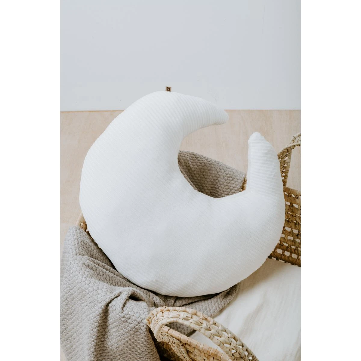 Decoratief sierkussen in maanvorm – Gemaakt van rib corduroy – 45×40 cm – Geef de babykamer een trendy uitstraling