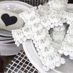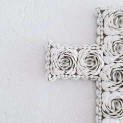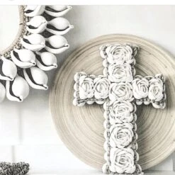 Deze mooie decoratieve kustkruisen zijn bedekt met witte schelpen die samen een mooi bloempatroon vormen. Ze zien er geweldig uit hangend of liggend op een tafel of plank. Een mooie kustdecoratie must have!
