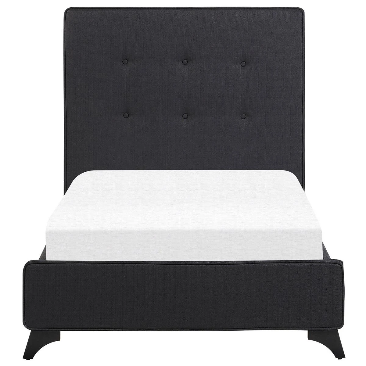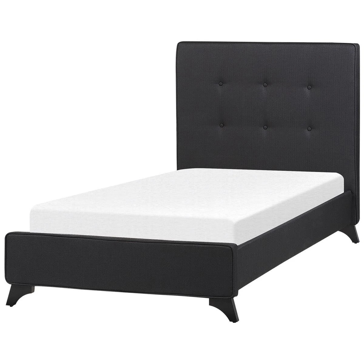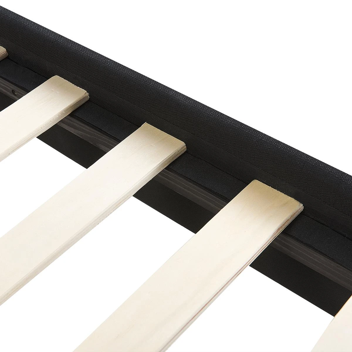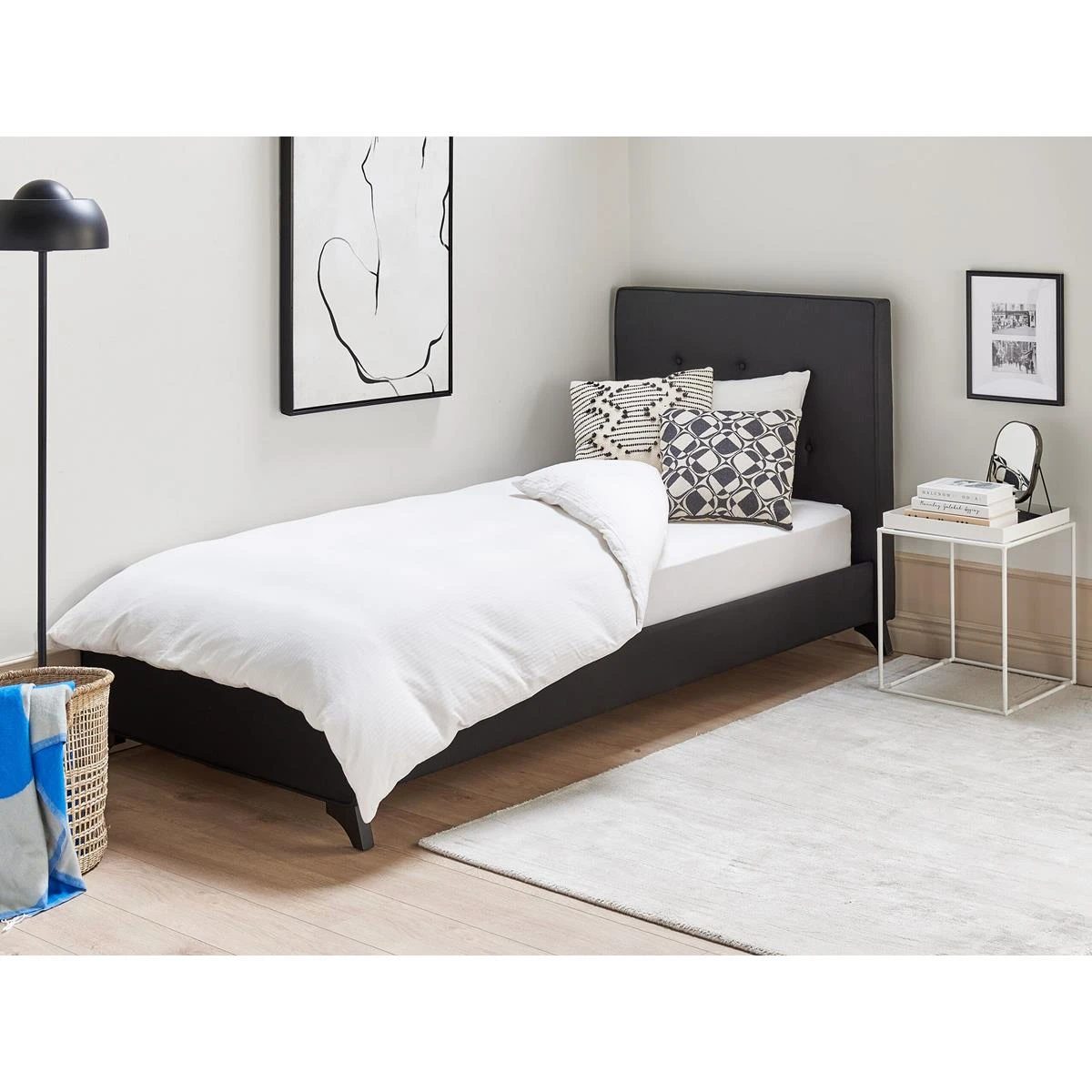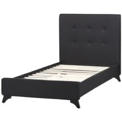 Dit prachtige gestoffeerde bed heeft een mooi, tijdloos ontwerp. Het zacht gewatteerde bedframe is verwerkt in een zwarte, duurzame bekleding in polyester stof. Als een opvallend detail valt het hoge hoofdeinde op, dat is voorzien van decoratieve kn
