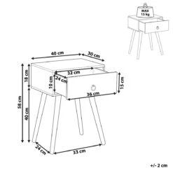 Organiseer jouw slaapkamer met dit nachtkastje. Het heeft een lade, waarin je je telefoonoplader, je favoriete boek of andere belangrijke items kunt opbergen. Het blad van het nachtkastje kan worden gebruikt voor je alarmklok of decoratieve items. H