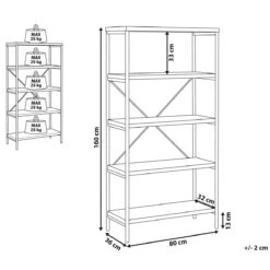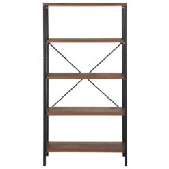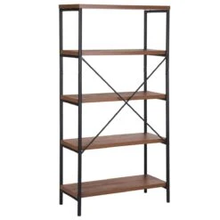 Deze boekenkast vindt zijn plek in elke kamer, in de woonkamer of thuiskantoor, maar ook als opbergruimte in de keuken of bijkeuken. Ontworpen met vijf planken, biedt het plaats aan allerlei accessoires, boeken, borden of documenten. De donkerbruine
