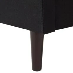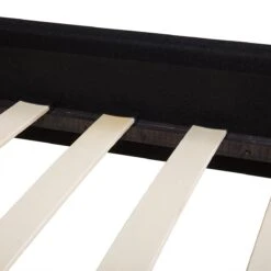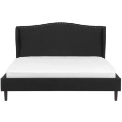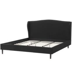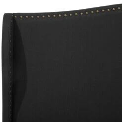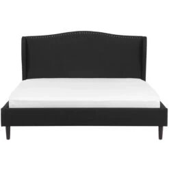 Dit bed is bekleed met een duurzame zwarte polyester hoes van hoge kwaliteit. Het comfortabel gestoffeerde hoofdeinde van het bed is geïnspireerd op de stijl van een zijstoel. De versiering met koperkleurige metalen klinknagels aan de bovenkant geef