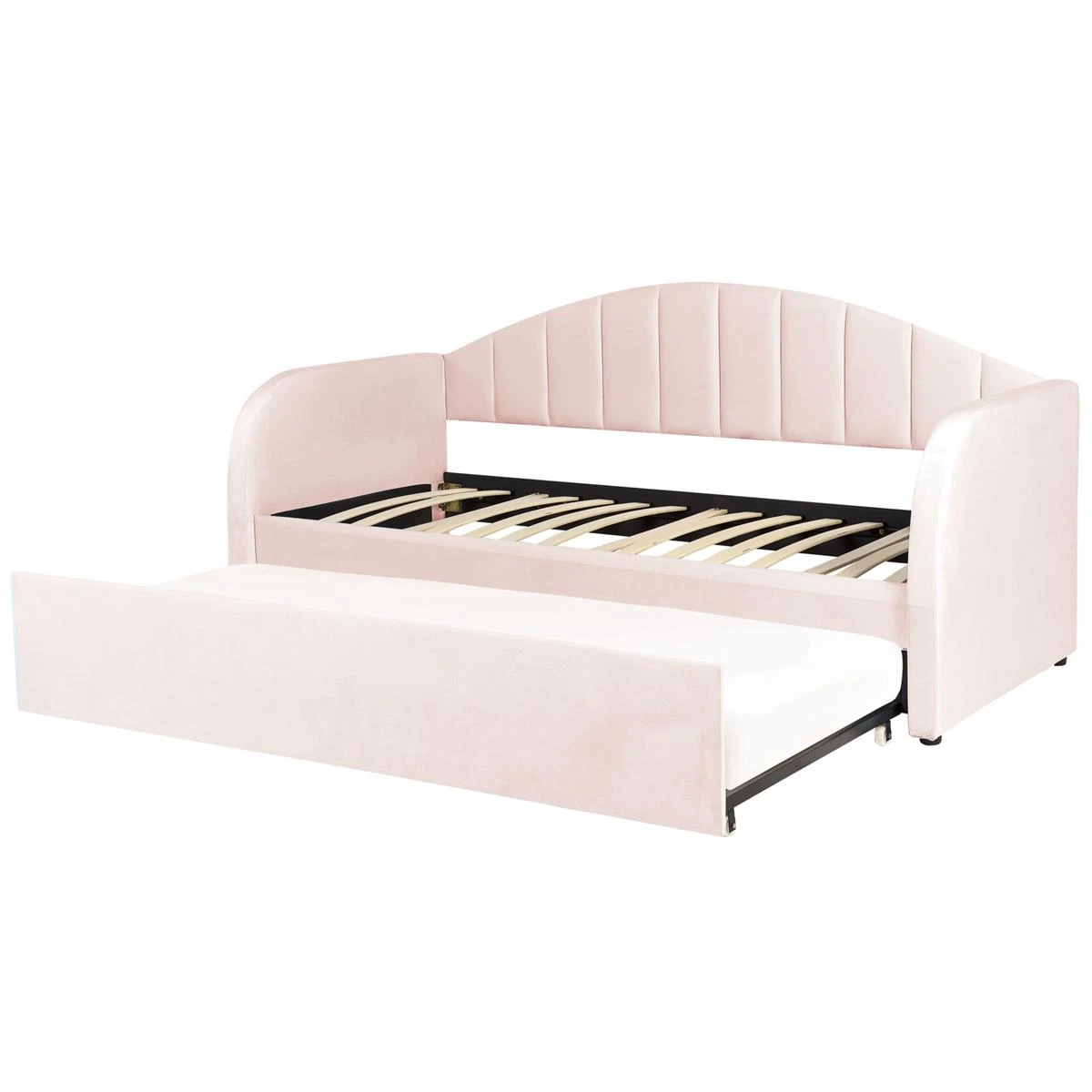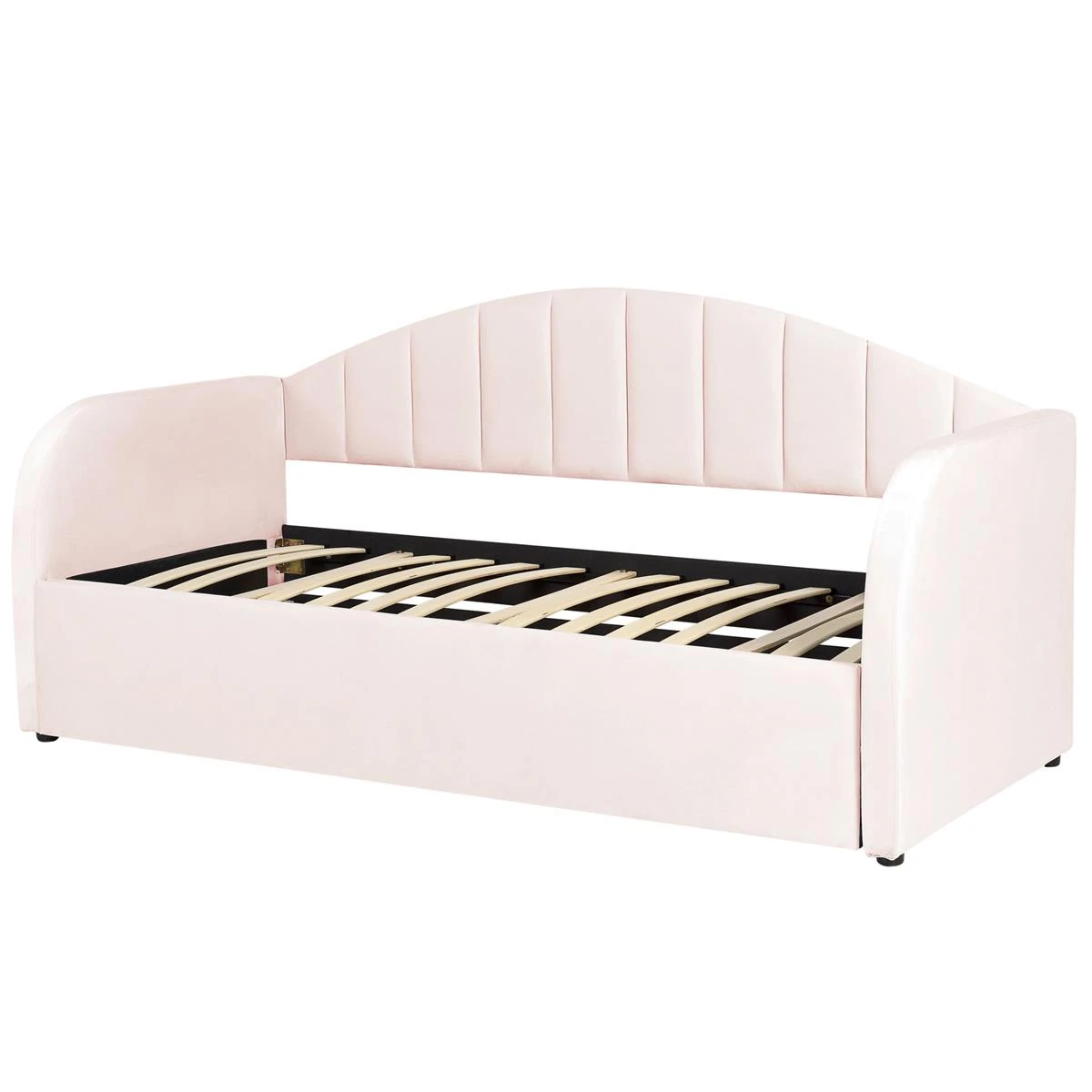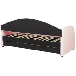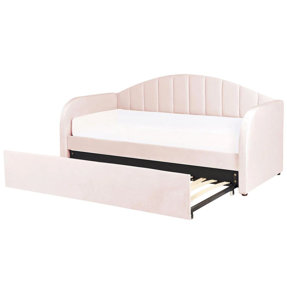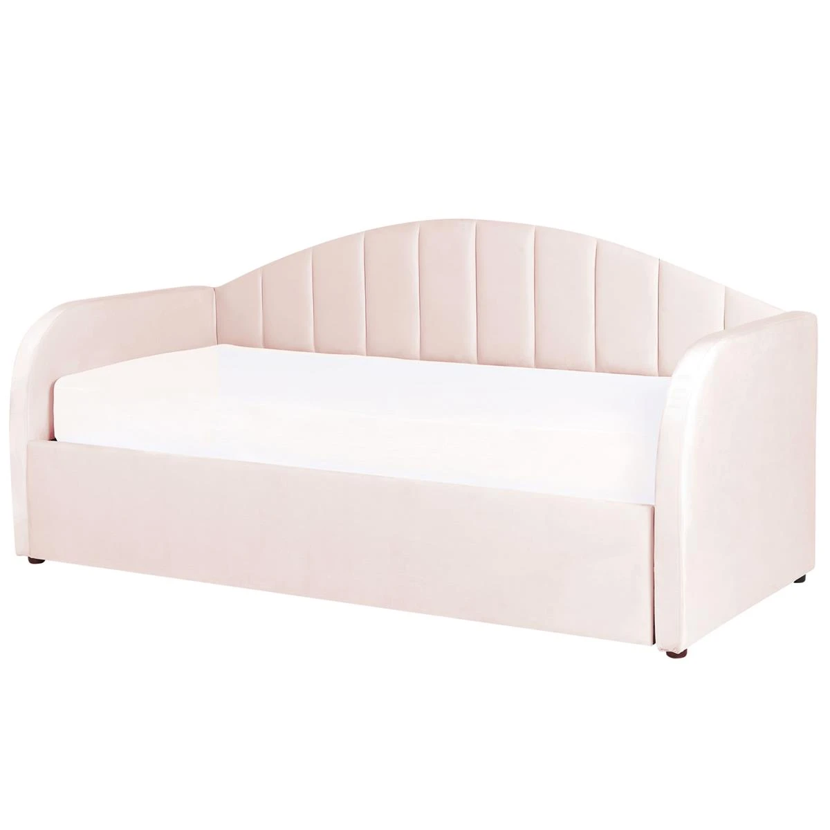 Dit multifunctionele bed is het perfecte meubelstuk voor een kinder- of logeerkamer. De fluwelen bekleding in pastelkleur en het trendy design maken het tot een tijdloos decoratiestuk. Dankzij de rugleuning kan het bed als bank worden gebruikt en do