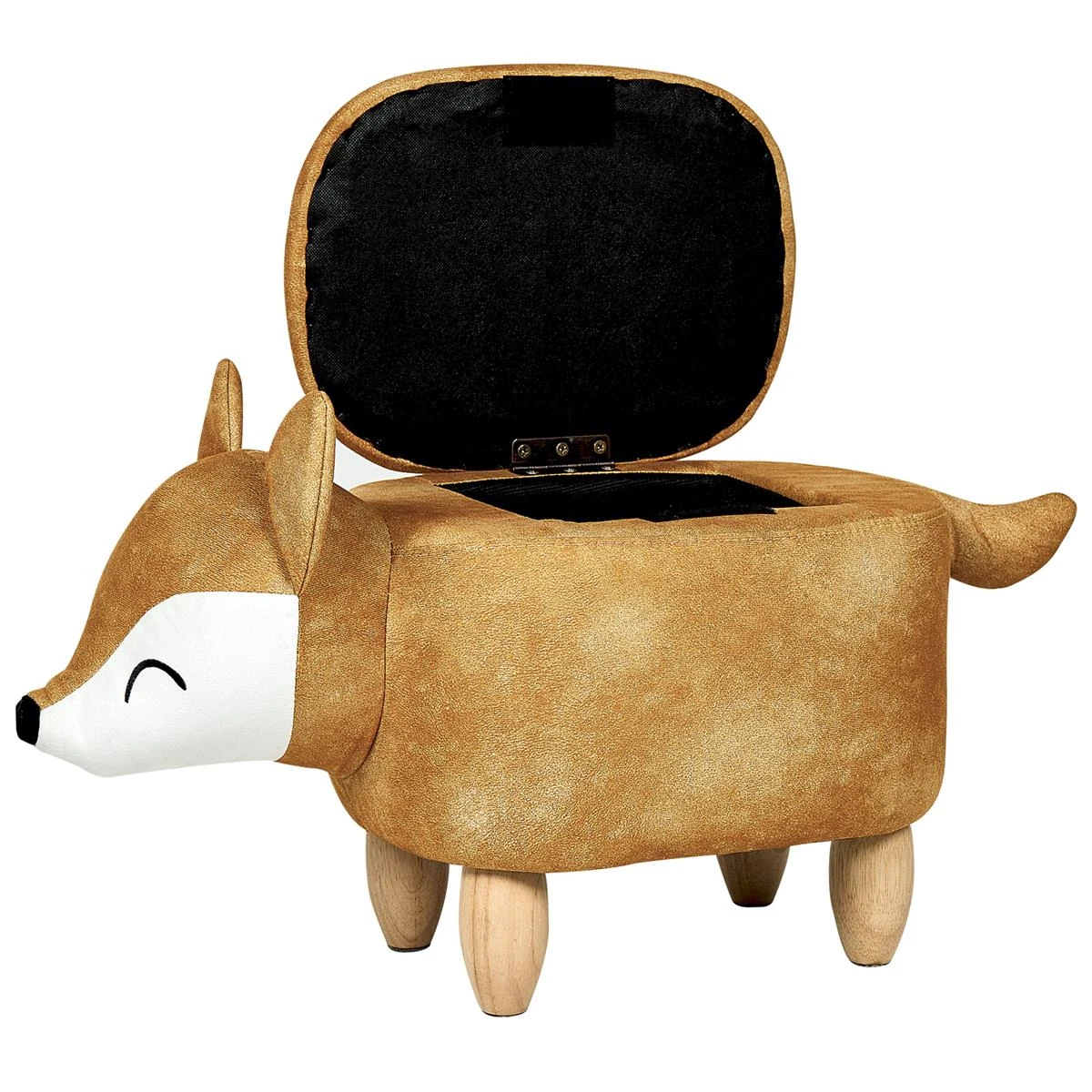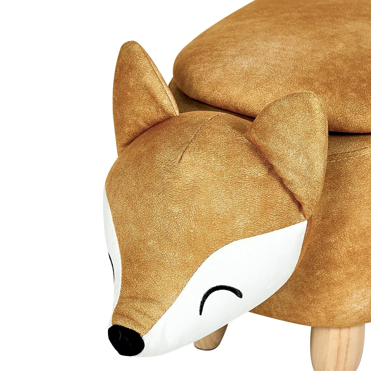 Maak de kinderkamer compleet met deze praktische hocker. Dit schattige krukje in de vorm van een vos heeft een lachende snuit en een grappige staart die elke kleintje zal liefhebben. De kruk is bekleed met een comfortabele fluwele stof zodat het com