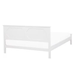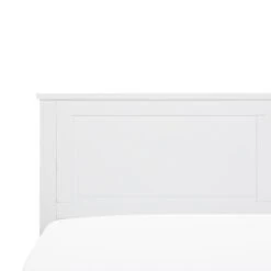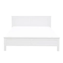 Rechte lijnen onderstrepen de tijdloze schoonheid van dit tweepersoonsbed. Zowel het verhoogde hoofdeinde als de voetsteun hebben een decoratieve houten rand aan de bovenkant, die een extra charme toevoegt aan de frisse, lichte landhuisstijl. Het ex