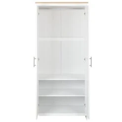 De eenvoudigste manier om je slaapkamer of hal te organiseren is door een ruime kledingkast toe te voegen. Met een kast als deze kun je je kleren, jassen en andere kleinere stukken opbergen. Deze garderobekast is gemaakt van gelamineerd hout, waardo