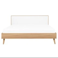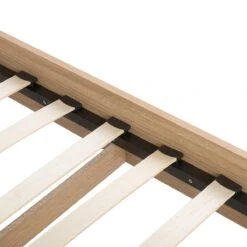 Breng een Scandinavisch thema in je slaapkamer door er een minimalistisch bed aan toe te voegen. Sterkte wordt gegarandeerd door hoogwaardige materialen waaruit het bed is gemaakt, en de houten latten die de matras ondersteunen, zijn solide en duurz