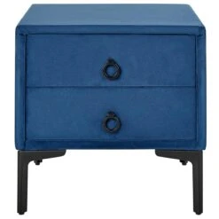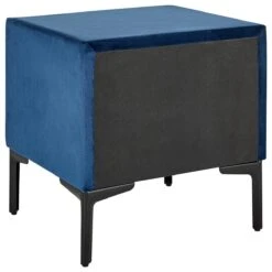 Dit elegante, maar praktische nachtkastje zal een prachtig onderdeel in elke modern ingerichte slaapkamer zijn. De blauw fluwelen bekleding benadrukt perfect de eenvoudige lijnen en het rechttoe rechtaan design van het nachtkastje, terwijl de zwarte