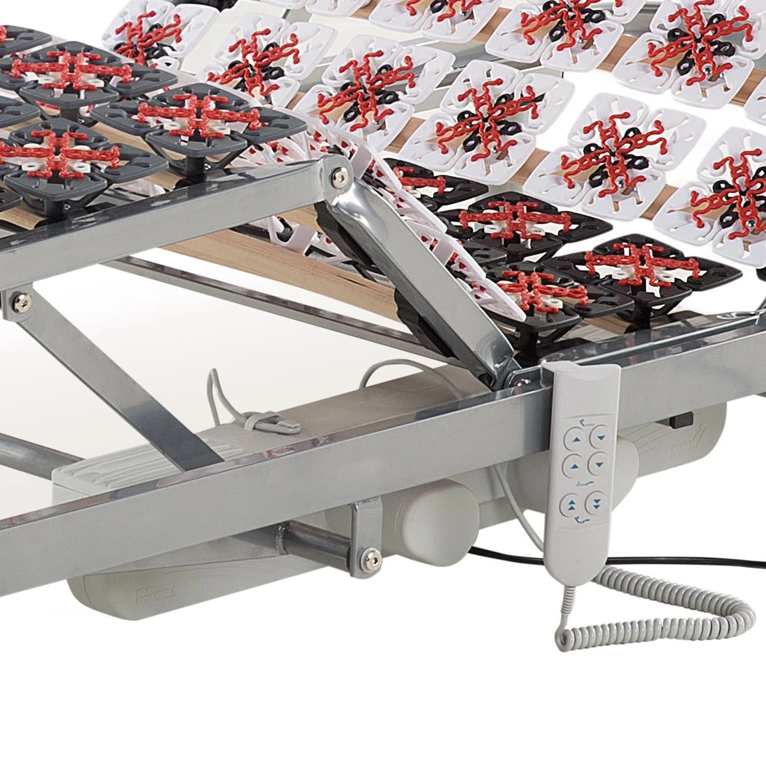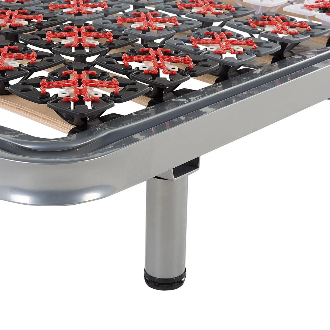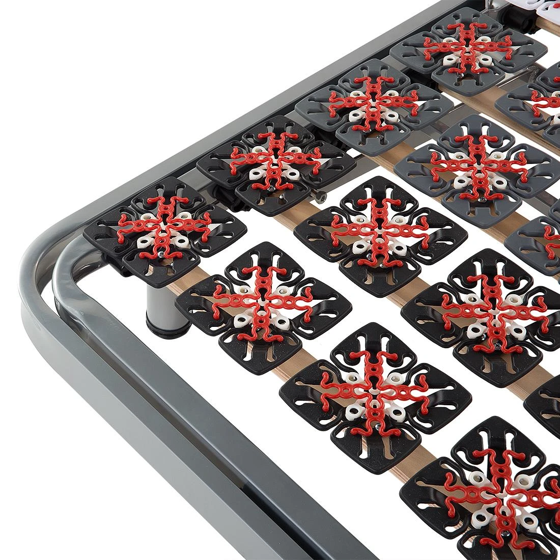 Dit stabiele en duurzame stalen bedframe is essentieel om kwaliteitsvolle rust te garanderen. Het bevat hoogwaardige berkenhouten latten die op hun plaats worden gehouden met synthetisch rubberen houders. Individuele hardheidszakken bedekken de hele