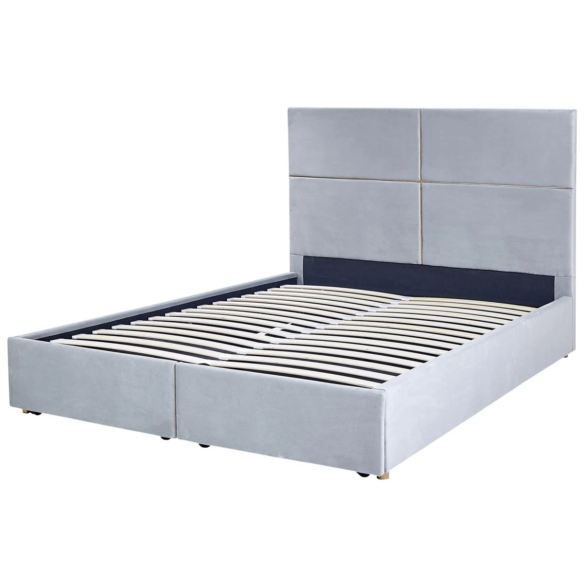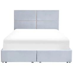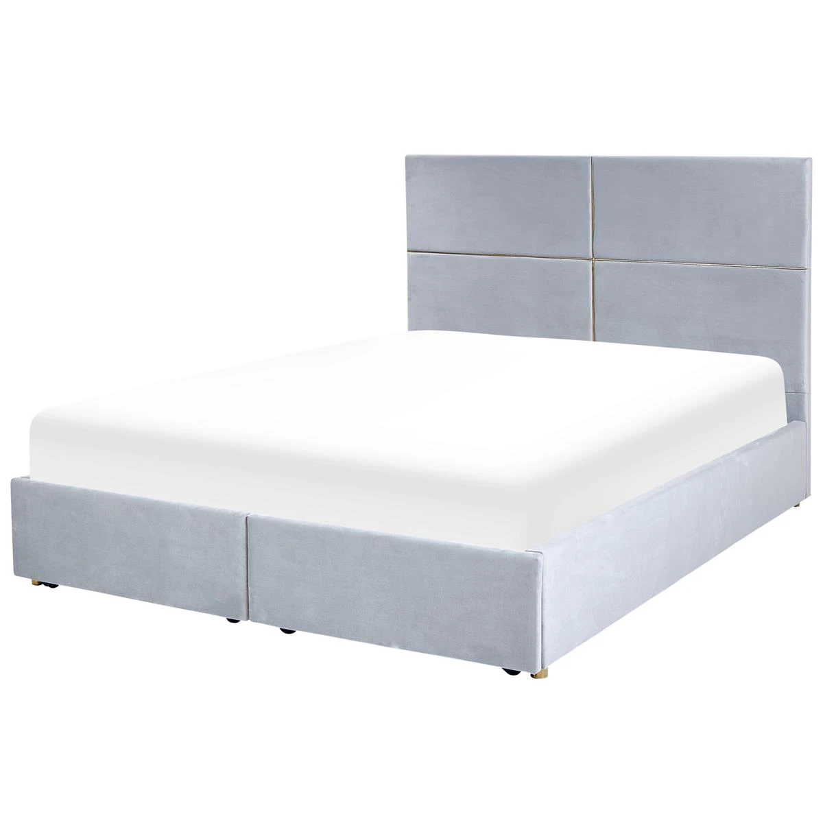 Geef je slaapkamer een decoratieve upgrade met dit mooie en functionele bedframe. Gemaakt van een duurzame houten constructie en fluwelen bekleding in lichtgrijs, zal dit bed een vleugje glamour toevoegen aan je interieur. De opbergruimte onder de l