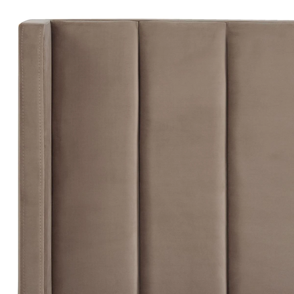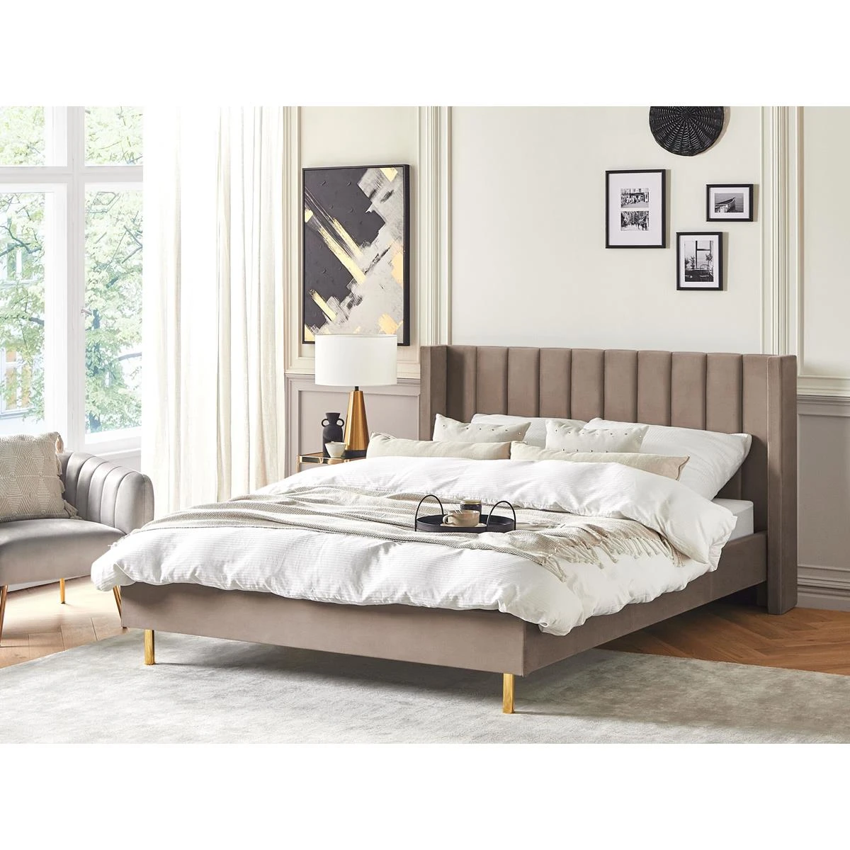 Voeg elegantie toe aan je slaapkamer en zorg voor ontspanning en rust. De bekleding van velours voelt aangenaam aan en is tegelijkertijd zeer sterk. De hele structuur wordt gedragen op korte, stabiele poten en de moderne look wordt benadrukt door he