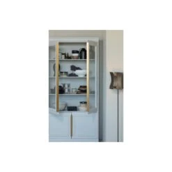 Combineer klassiek en modern met de robuuste BePureHome Organize Vitrinekast. De mistgrijze kleur en messing handgrepen geven een moderne twist aan de overwegend klassieke kast. Met glazen deuren om je prachtige woonaccessoires te laten stralen!