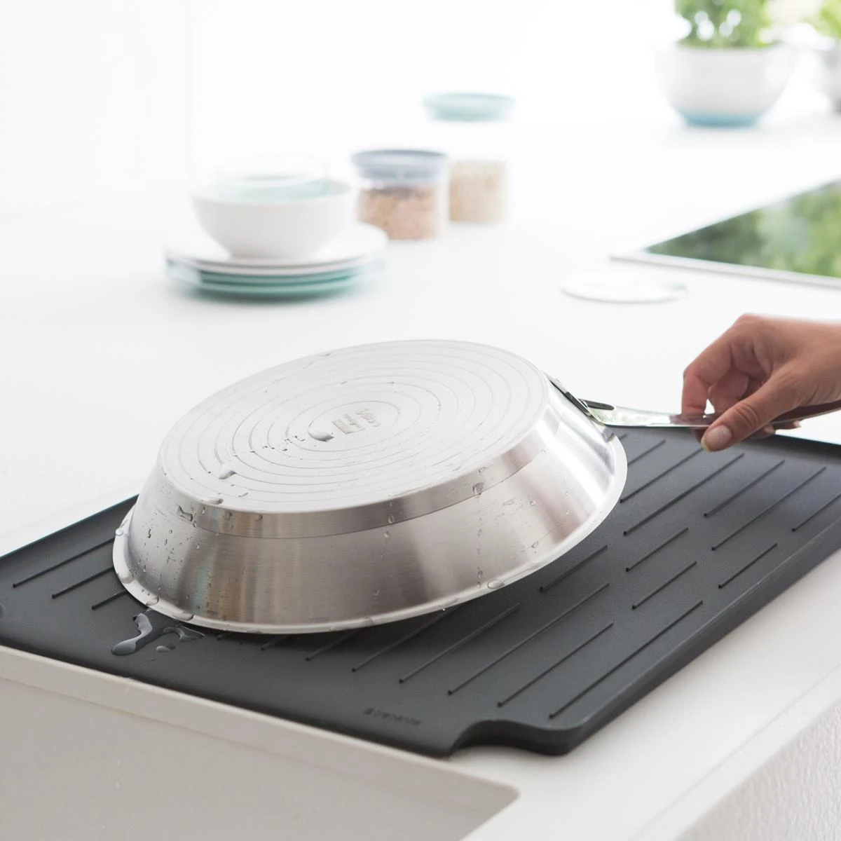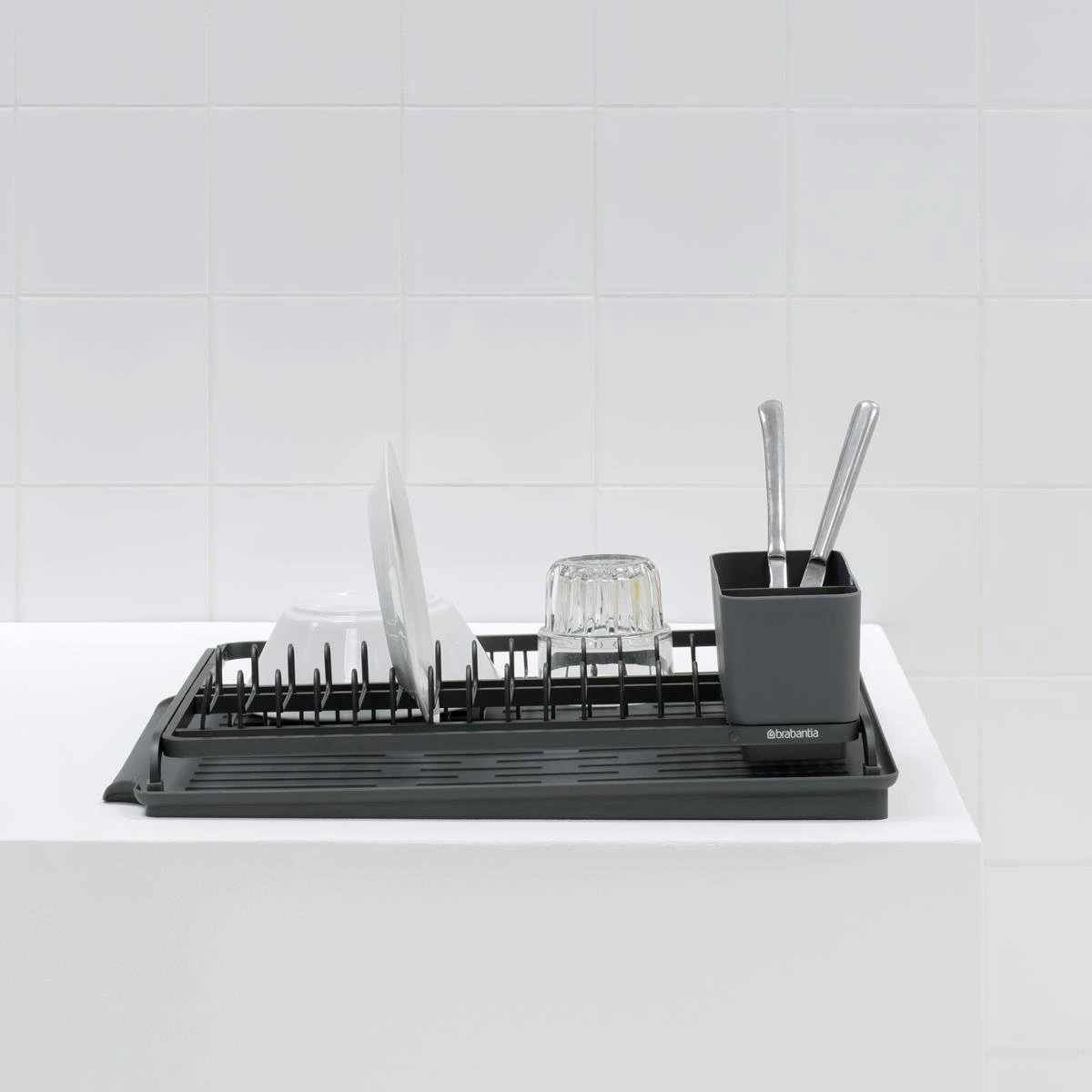 Voor een kleine of een grote afwas pak je het afdruiprek van Brabantia erbij. Borden bij de borden, bekers bij de bekers en het bestek in het bestekbakje. Alles past netjes en geordend op het rek en het water wordt direct afgegoten via het matje.