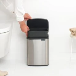 Niet te groot, niet te klein, maar precies goed. De Brabantia Bo Afvalemmer is perfect voor in het toilet of in de badkamer. Zet ‘em neer of hang Bo aan de muur. De deksel opent gemakkelijk vanaf de linker-, rechter- én voorkant. Handig!