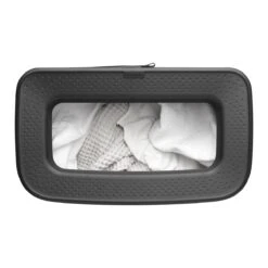 - Slim ontwerp; deksel hoeft er niet af om er was in te gooien