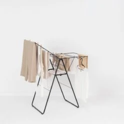 Bespaar tijd, energie en ruimte door je was natuurlijk te droge met dit slimme Brabantia HangOn droogrek. Naast veel droogruimte kun je er ook extra kledinghangers aan het rek kwijt. Al je was droog? Klap hem in en berg ‘m op!