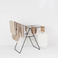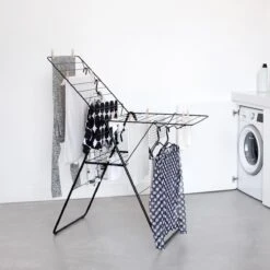 Bespaar tijd, energie en ruimte door je was natuurlijk te droge met dit slimme Brabantia HangOn droogrek. Naast veel droogruimte kun je er ook extra kledinghangers aan het rek kwijt. Al je was droog? Klap hem in en berg ‘m op!