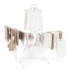 Bespaar tijd, energie en ruimte door je was natuurlijk te droge met dit slimme Brabantia HangOn droogrek. Naast veel droogruimte kun je er ook extra kledinghangers aan het rek kwijt. Al je was droog? Klap hem in en berg ‘m op!