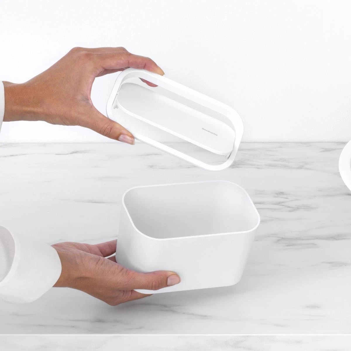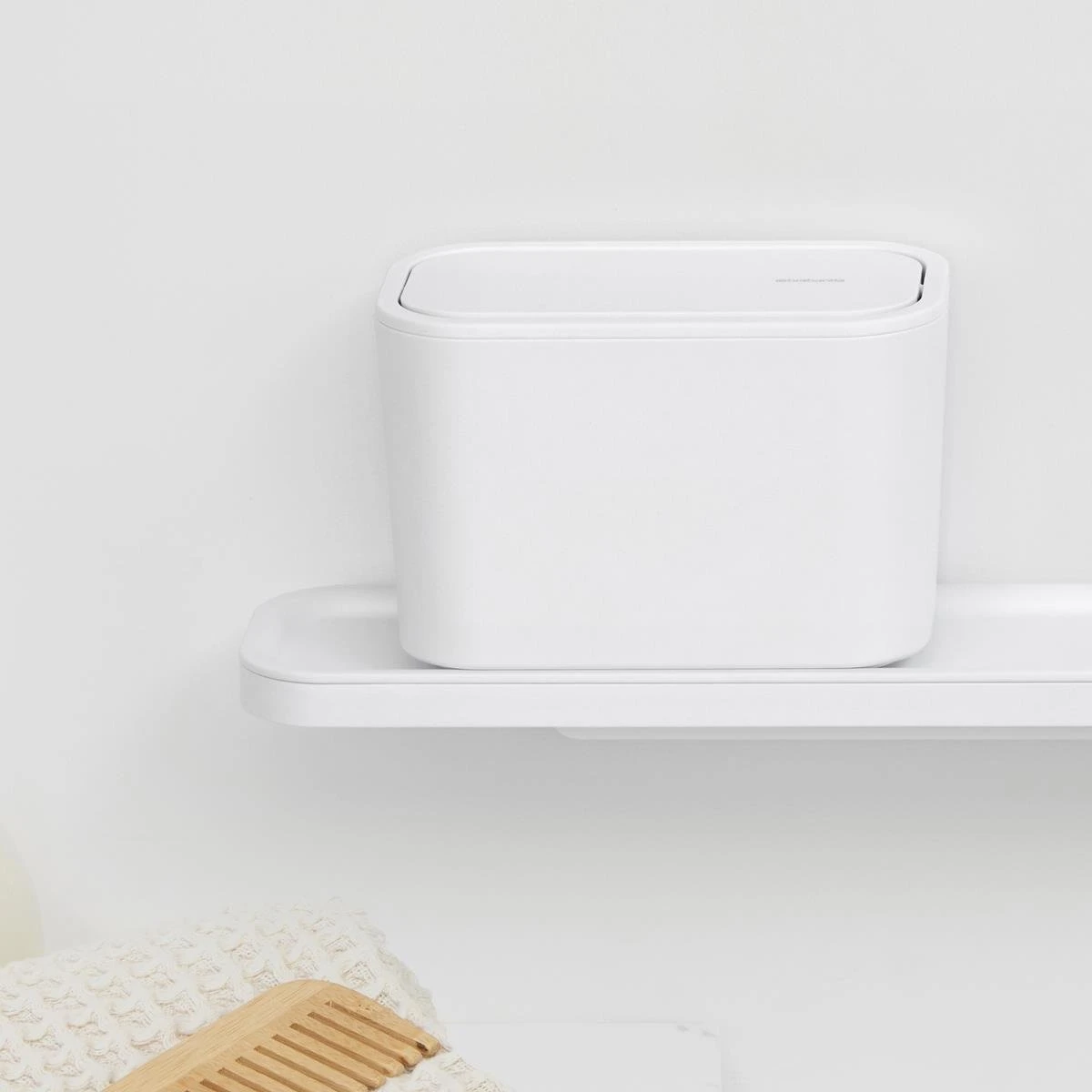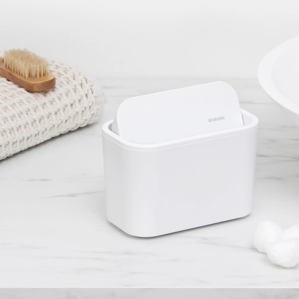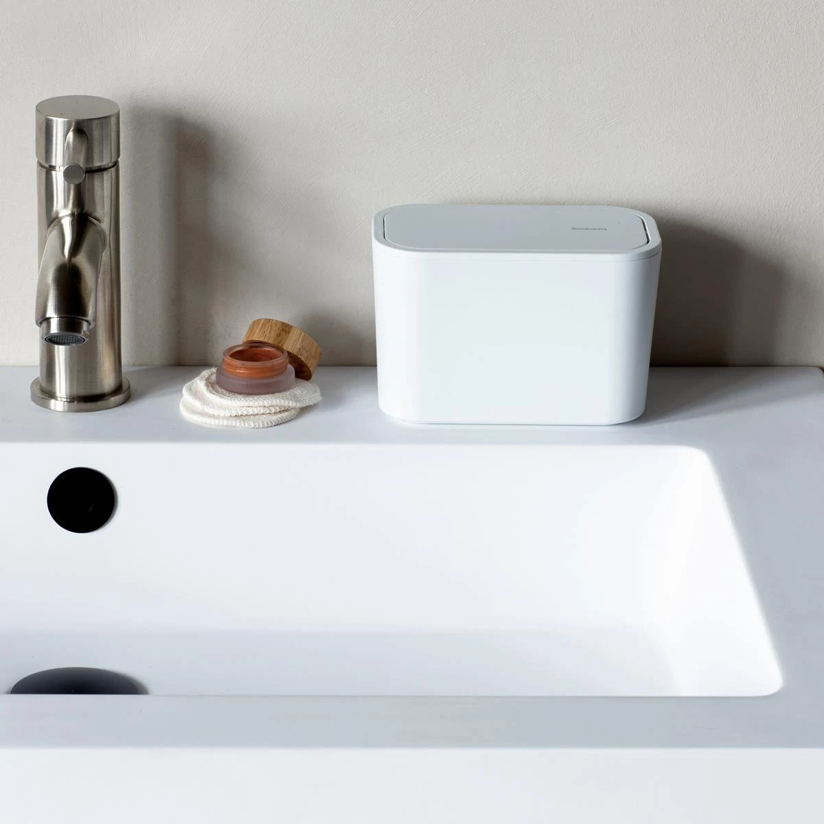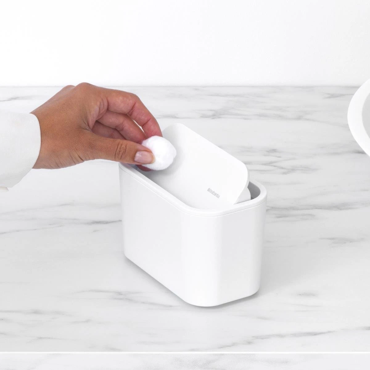 Klaar met het gebruiken van een wattenstaafje of -schijfje? Gooi dat dan weg in dit Brabantia MindSet afvalbakje met klapdeksel voor een hygiënische en nette wastafel. Het bakje staat stevig en je hoeft niet bang te zijn dat het krassen achterlaat.