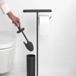 Natuurlijk wil je alles binnen handbereik in de kleinste kamer van het huis en dat is mogelijk met deze Brabantia MindSet toiletbutler. Zeker de ultieme assistent die een plek biedt aan je mobiel, een rol toiletpapier en een toiletborstel.
