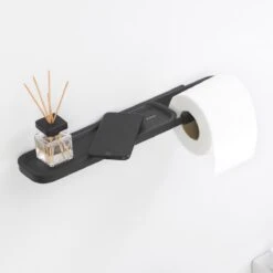 Deze Brabantia MindSet toilethouder heeft iets extra’s en dat is een plank. Maak er zelf iets moois van door er bijvoorbeeld een kaarsje of een wierookje op te zetten. Ook geschikt om je mobiel op te leggen!