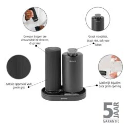 Netjes georganiseerd én stijlvol: de Brabantia SinkStyle zeepdispenser set wil je gewoon op het aanrecht hebben staan. De set bestaat uit een zeeppomp voor handzeep en een afwasmiddeldispenser die afwasmiddel geeft wanneer je erin knijpt. Ideaal!