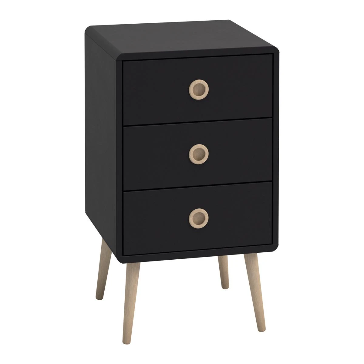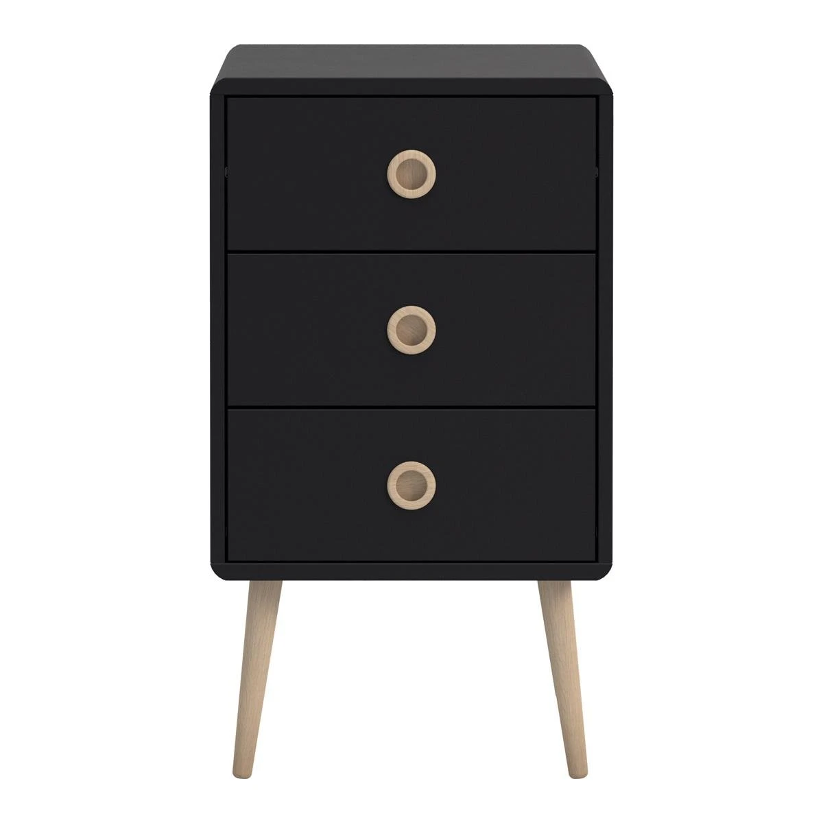 Om je slaapkamer écht af te maken zet je dit mooie Milly nachtkastje van by fonQ naast je bed! Het nachtkastje is gemaakt van hout met speelse handvatten. In de drie lades berg je je spullen eenvoudig op, ideaal.