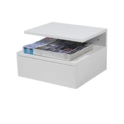 Zweeft het by fonQ Zoey nachtkastje nou naast je bed? Nee dat niet, maar het lijkt wel zo! Hang het mooie kastje gemakkelijk op en het tijdloze design kan jaren mee. In de handige lade doe je spullen die je liever niet in het zicht wilt hebben.