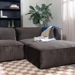 Dit is de stoere Brick bank van by fonQ. Deze hoekbank bestaat uit twee elementen, waarvan één chaise longue. Lekker met de voetjes omhoog dus! De elementen hebben een onzichtbare krokodilbevestiging, dus je kunt ze ook los van elkaar plaatsen.