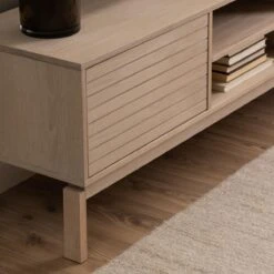 Jouw televisie krijgt een stijlvolle plek op het Cabin tv-meubel van by fonQ. De subtiele lamellenfronten maken de kast uniek, maar tegelijkertijd heeft de kast een rustige look. Je hebt genoeg opbergruimte voor boeken, de afstandsbediening en meer!