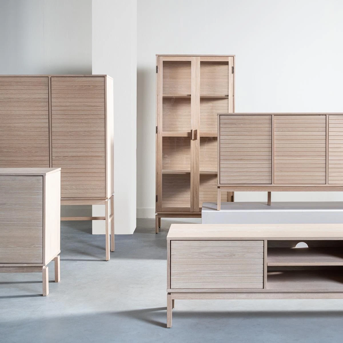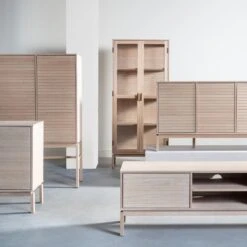 - De lamellenfronten geven de kast een uniek detail