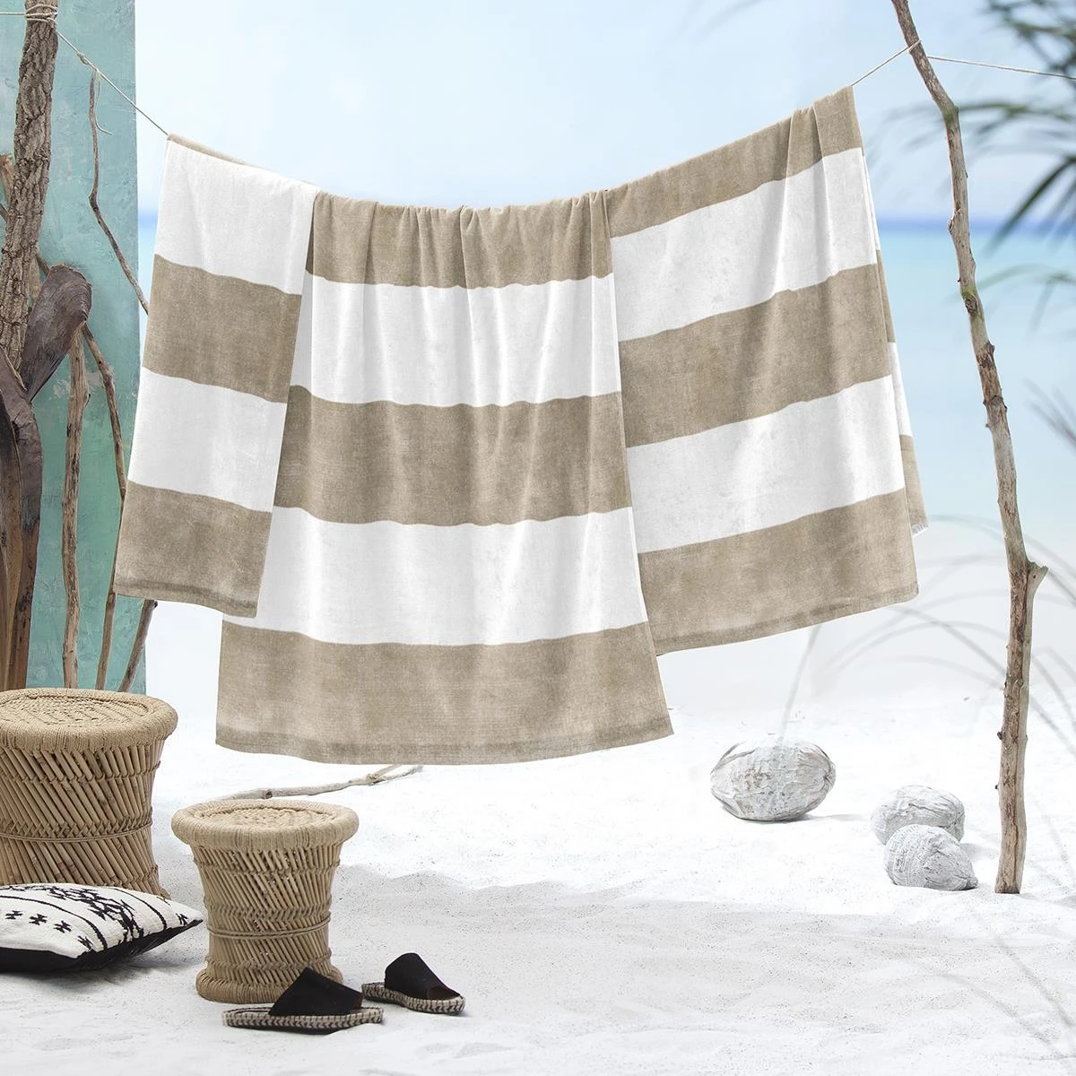 Cinderella strandlaken Dune Stripe – Egyptisch katoen – Sand – 100×200 cm