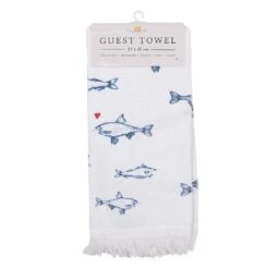 Dit door Clayre & Eef zelf ontworpen gastendoekje met blauwe vissen, is perfect als handdoek voor het toilet of voor in de keuken. Het gastendoekje is ideaal om cadeau te geven. Ook leuk in combinatie met een theedoek van een soortgelijke serie.