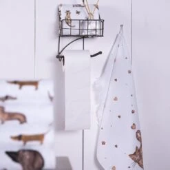 Zwart metalen toiletrol houder voor aan de wand van het merk Clayre & Eef. Het heeft een klein rekje erboven, erg handig voor je persoonlijke spullen. Toiletrolhouder Toiletpapierhouder Toiletrol houder