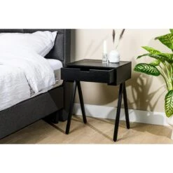 Mango Noir – Nachtkastje – mango – zwart – 1 lade – stalen poten – zwart
