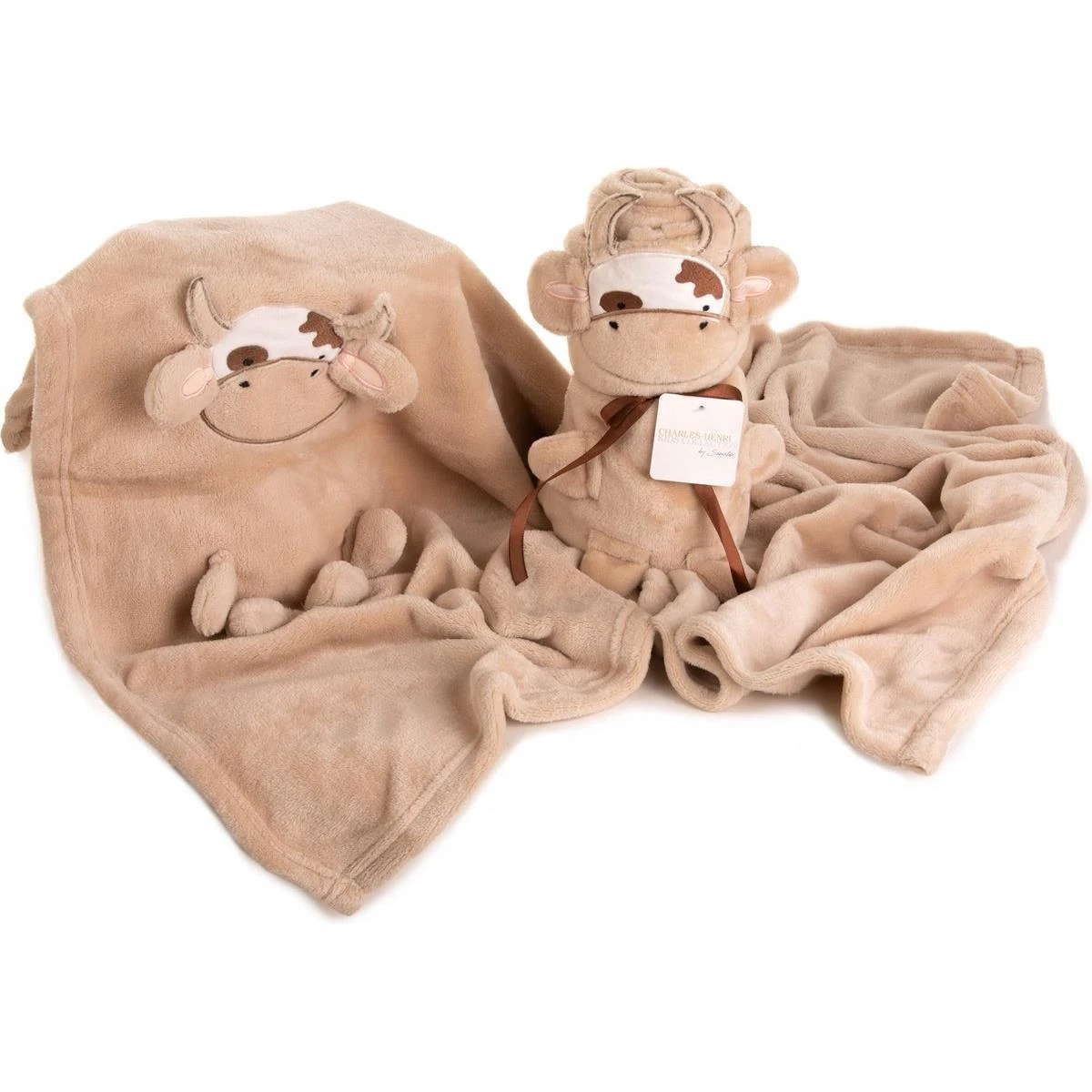 Baby/Kinder Flanel Fleece Knuffel Deken Koe – zand 75x100cm