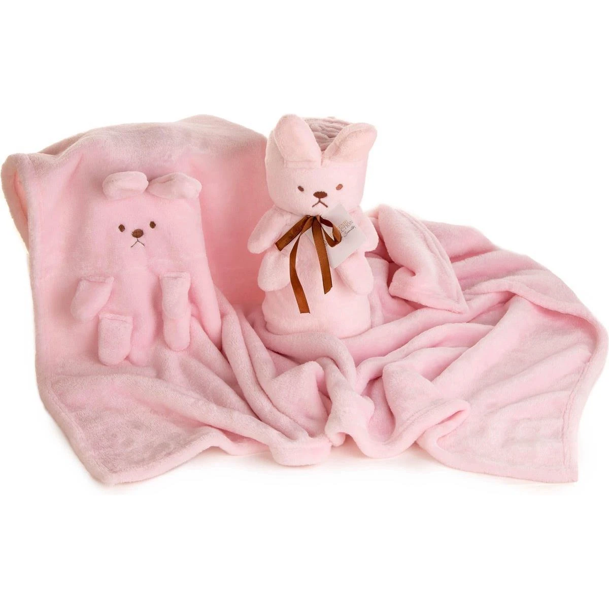 Baby/Kinder Flanel Fleece Knuffel Deken Konijn – roze 75x100cm