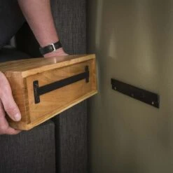 - Het nachtkastje wordt door middel van een metalen wandstrip aan de wand gemonteerd.