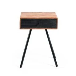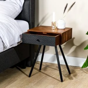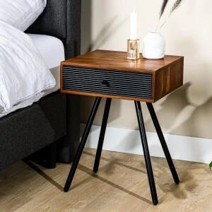 Dit leuke nachtkastje is niet alleen heel praktisch maar is ook nog eens een echte eye-catcher in jouw slaapkamer. Dit stijlvole nachtkastje is gemaakt van hoogwaardig walnoothout en is voorzien van 1 lade. Handig dus om dingen in op te bergen. Daarnaast biedt het kastje genoeg ruimte voor een wekker of eventuele accesoires. Het nachtkastje is voorzien van een stalen onderstel die zwart gepoedercoat is. Een super trendy item dat toch in verschillende stijlen tot zijn recht komt.