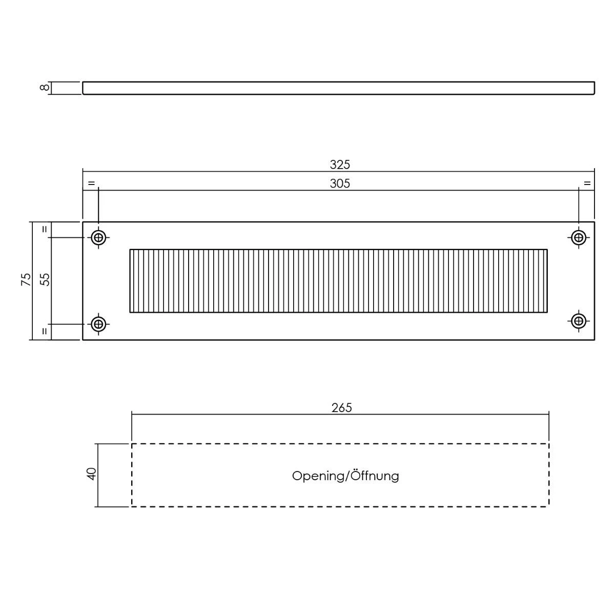 - Voorzien van een borstel en inwerpopening van 40×265 mm (hxb)