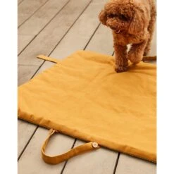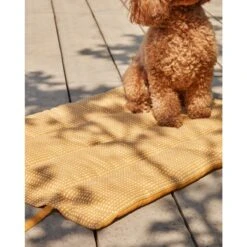 Draagbare Trufa-deken voor huisdieren 100% katoen gecombineerd mosterdgeel en wit stiksel
