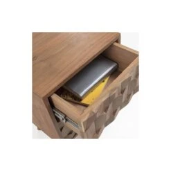 Hoe je bed ook staat je zult altijd willen dat de Khaleesi dichtbij is. Een nachtkastje van massief acaciahout met een uniek ontwerp, geïnspireerd op de zichtbare geometrische vormen die in het hout zijn uitgehouwen om diepte te creëren.
