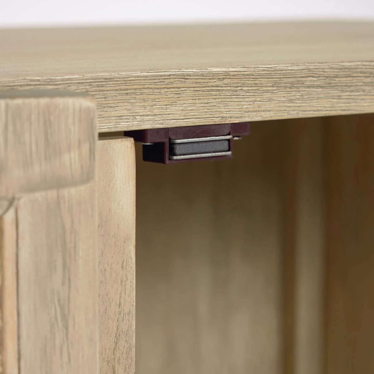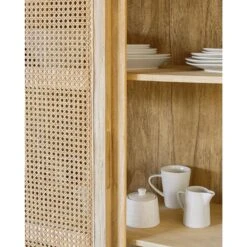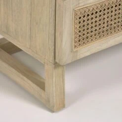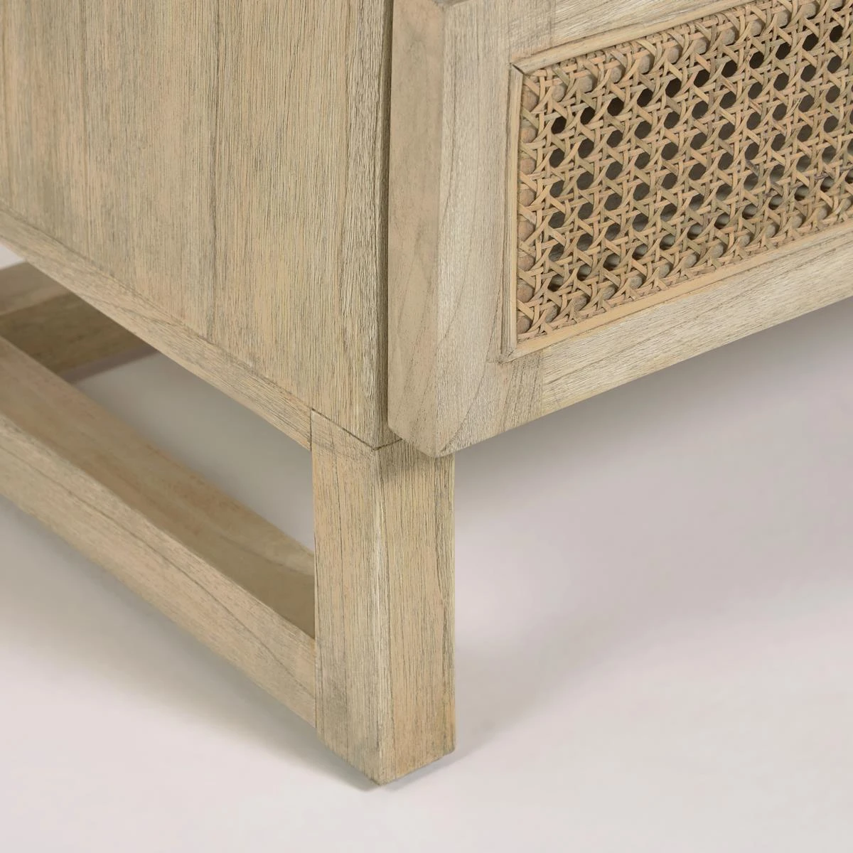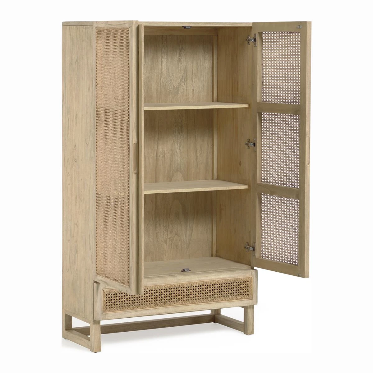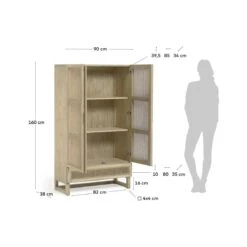 - Kledingkast van massief mindihout en fineer, 90 x 58 cm. Elke voorkant is gemaakt van gevlochten rotan en heeft een unieke kleur en tekening.