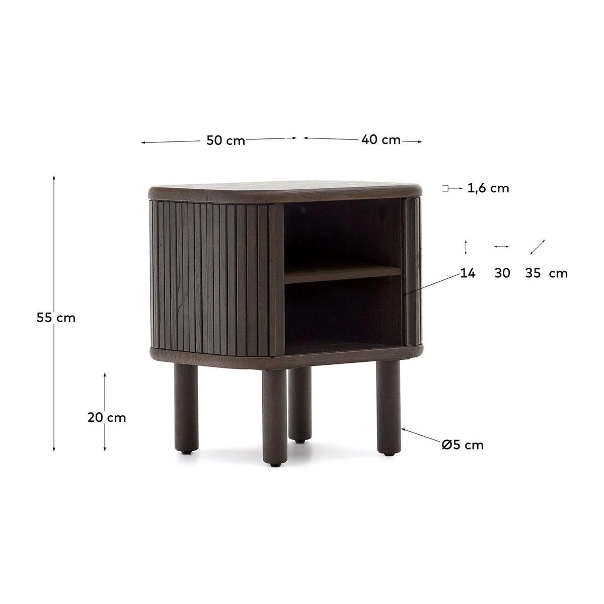De elegante Mailen nachtkastje van Kave Home nachtkast is een stijlvolle aanvulling voor elke slaapkamer. Door de verstelbare poten, met een diameter van 5 centimeter en een hoogte van 20 centimeter, zorgen voor stabiliteit voor elke ondergrond.