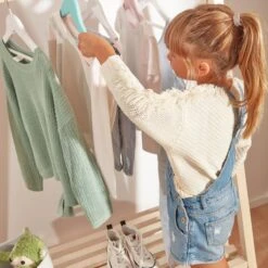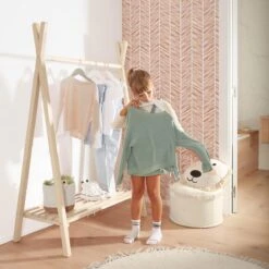Dit Kave Home Maralis tipi kledingrek is een decoratieve en praktische aanvulling op de kinderkamer! Met deze tipi leren de kinderen hoe ze hun kamer netjes moeten houden. Het kledingrek heeft een stang en een legplank onderaan. Top!