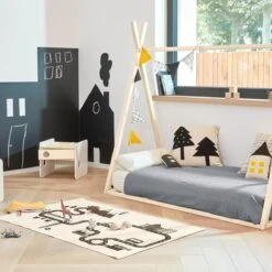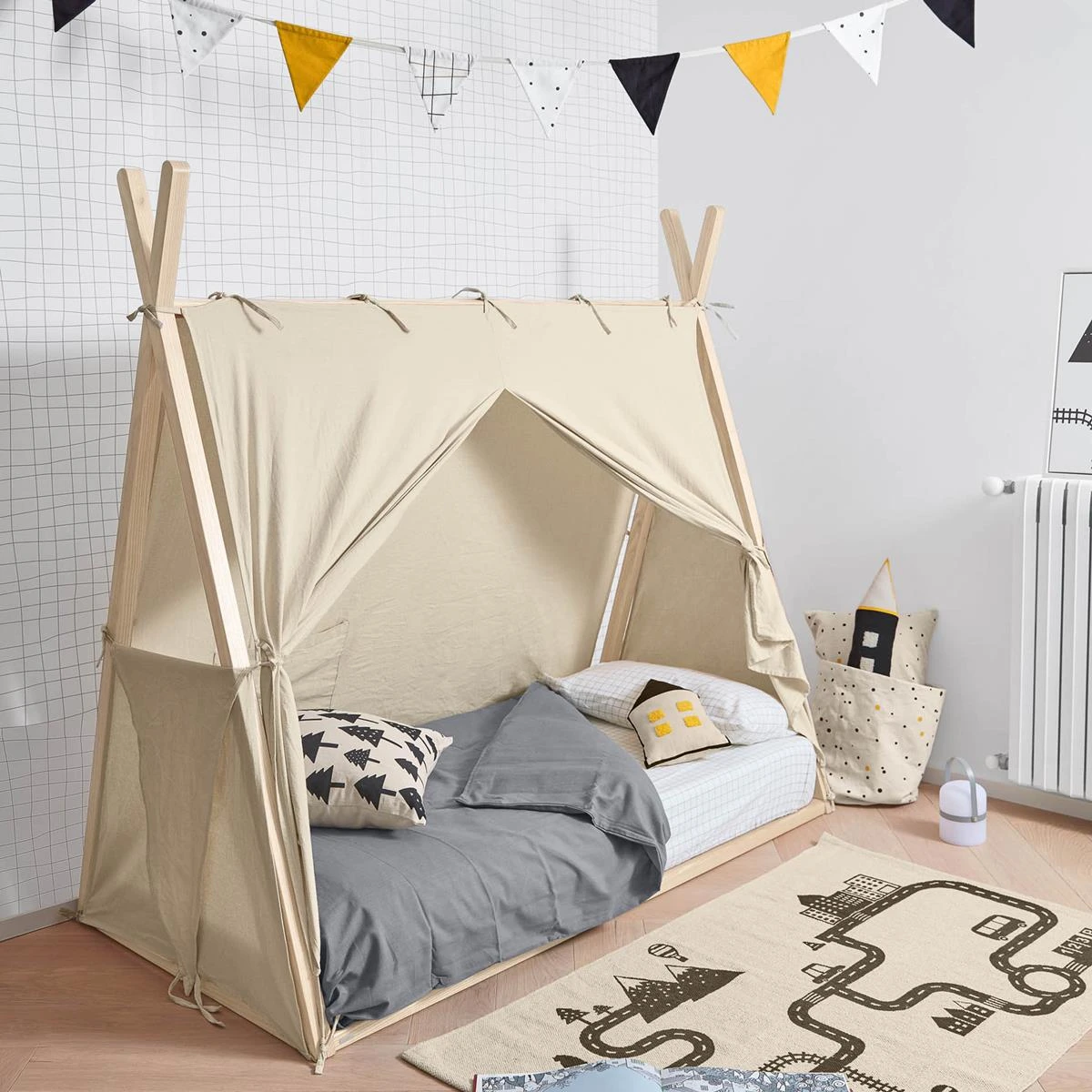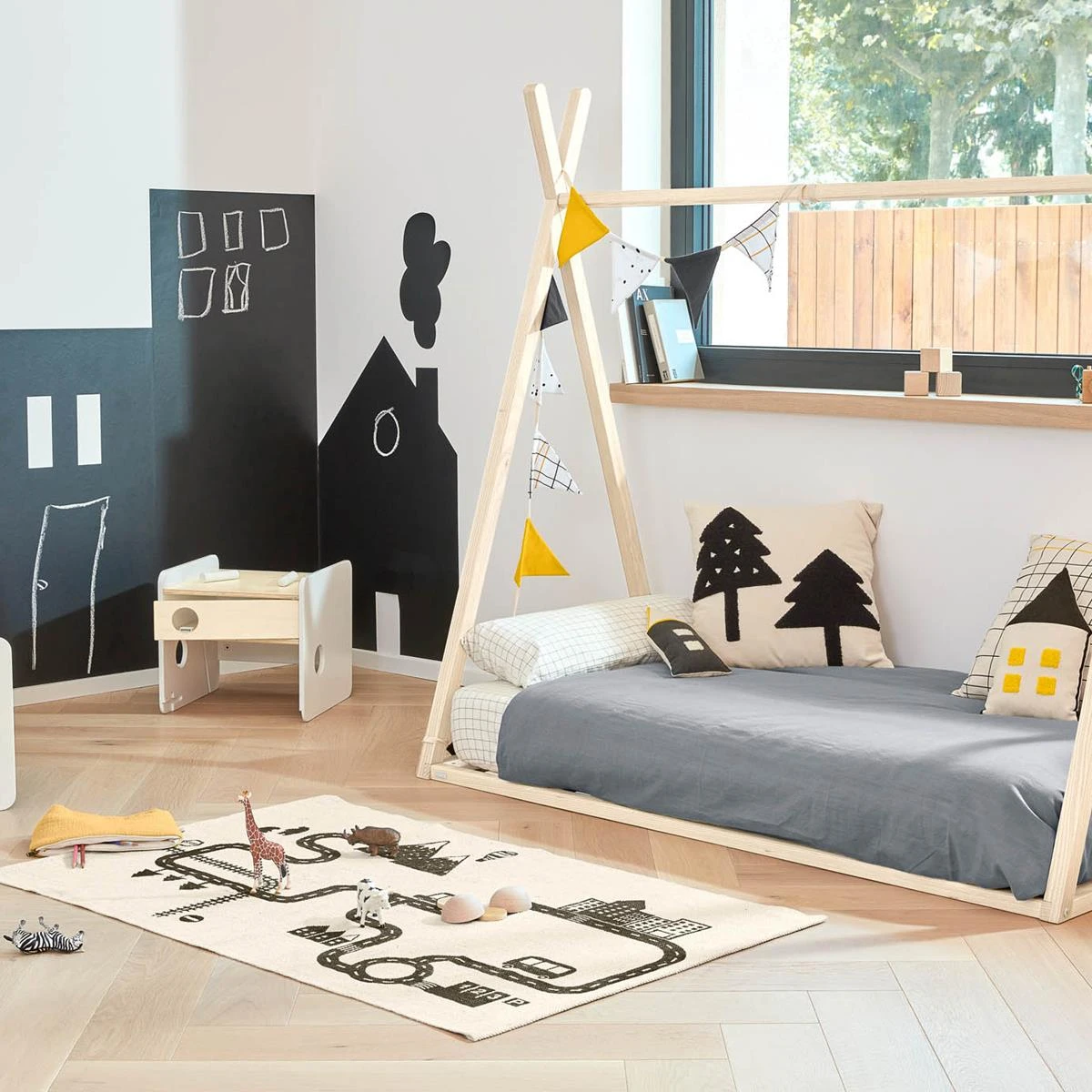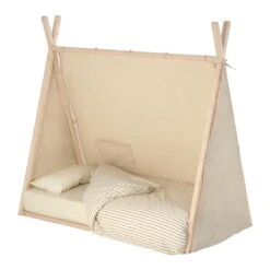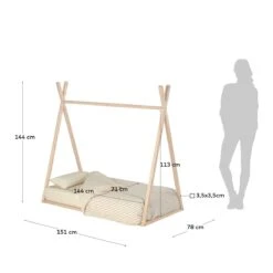 Op dit Kave Home Maralis tipi bed slaapt je kleintje elke nacht als een roos. Met z’n unieke ontwerp in de vorm van een Indiase tipi is dit bed ontworpen om, dankzij de lage hoogte, op een veilige manier autonomie en bewegingsvrijheid te bereiken.