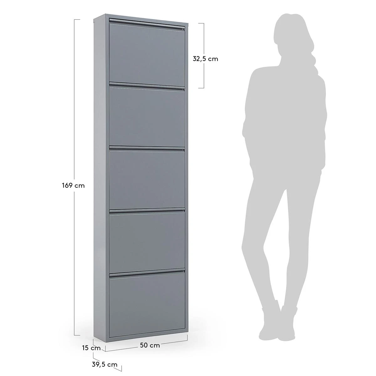 Schoenenrek Ode 50 x 168,5 cm 5 deuren grijs