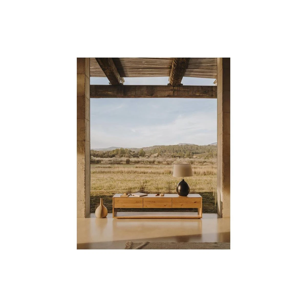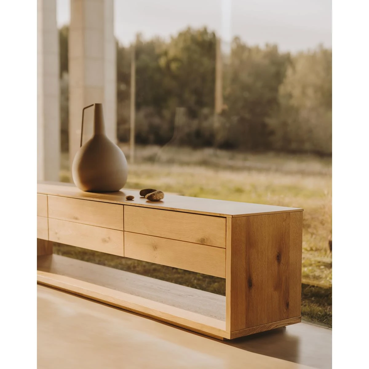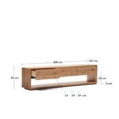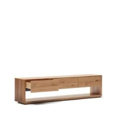 TV-meubel Alguema 3 laden in eiken fineer met natuurlijke afwerking 200 x 51 cm